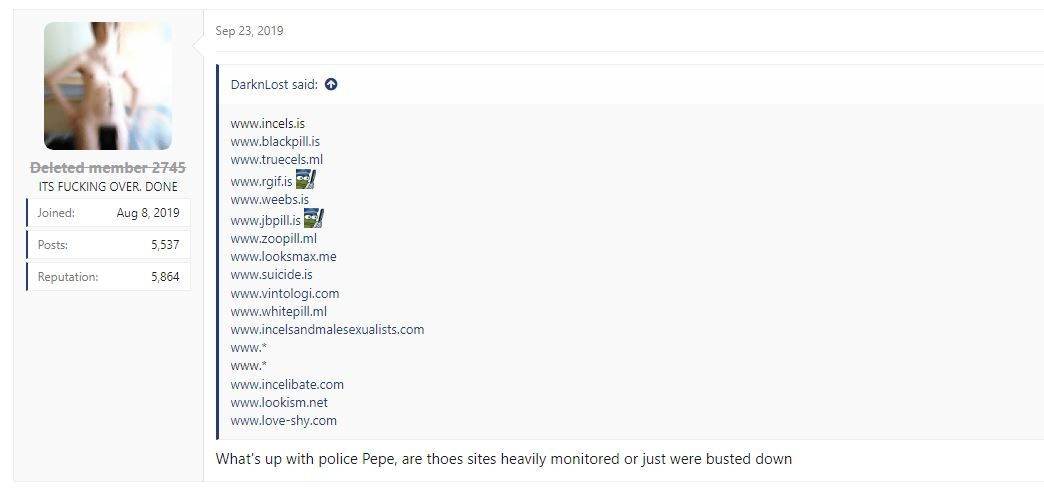 According to counterterrorism analyst Jade Paker, accelerationists infiltrated incels.is because they viewed the maladjusted inhabitants as pathetic, low tier individuals in society. The benefit of this was two-fold. First, the high incidence of mental illness and neurotypical symptoms combined with pre-indoctrination and a negative worldview naturally made them more vulnerable and accepting of extreme ideologies. Second, Jade speculated that fostering an environment of fear around incels, who are by definition weak and ineffectual males, was simply something that the accelerationist thought was funny. They did it as a “meme”.