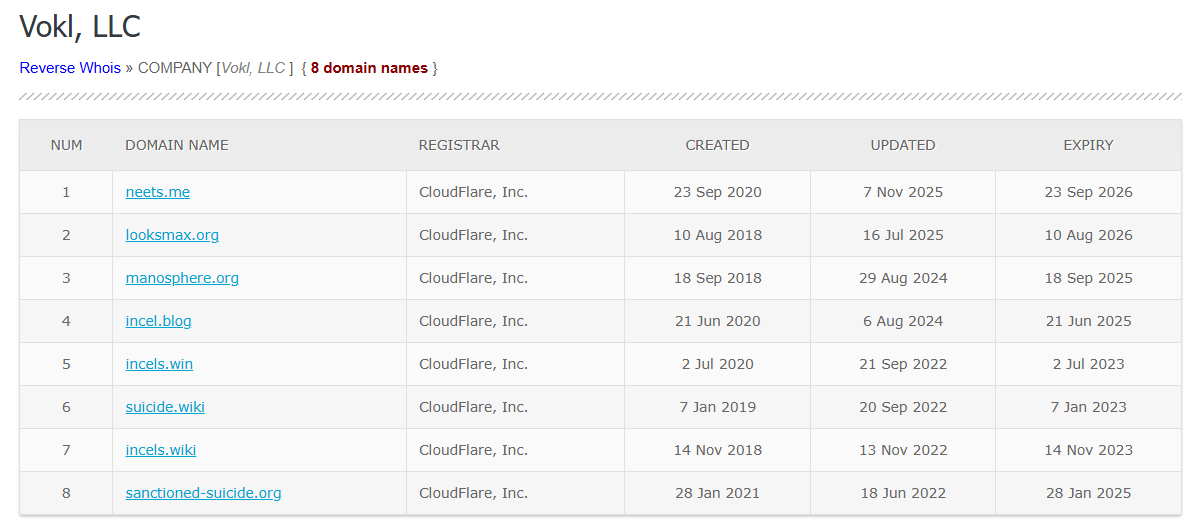 Incels.is is at the epicenter of this insidious network of websites which exist to funnel incels into various exploitative subcommunities. The two men who founded incels.is have already been publicly exposed by the New York Times as Diego Galante from Uruguay and Lamarcus Small from Alabama. In recent years, Galante has taken a backseat to Small, who has repeatedly attempted to publicly undersell his role in the network. Despite his denial, Lamarcus Small’s company, Vokl, LLC, is the registered owner of the domains of all the websites outlined in this article series, according to Whoxy.com.